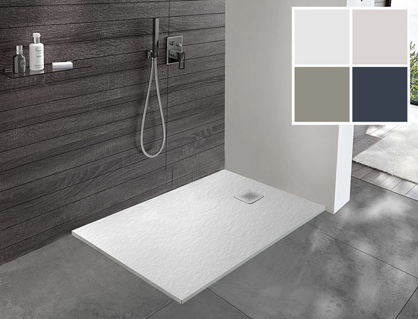 Obdélníková sprchová vanička z litého mramoru B-M/ECO Mineral s hloubkou pouhých 1,5 cm. Včetně sifonu a krytu.